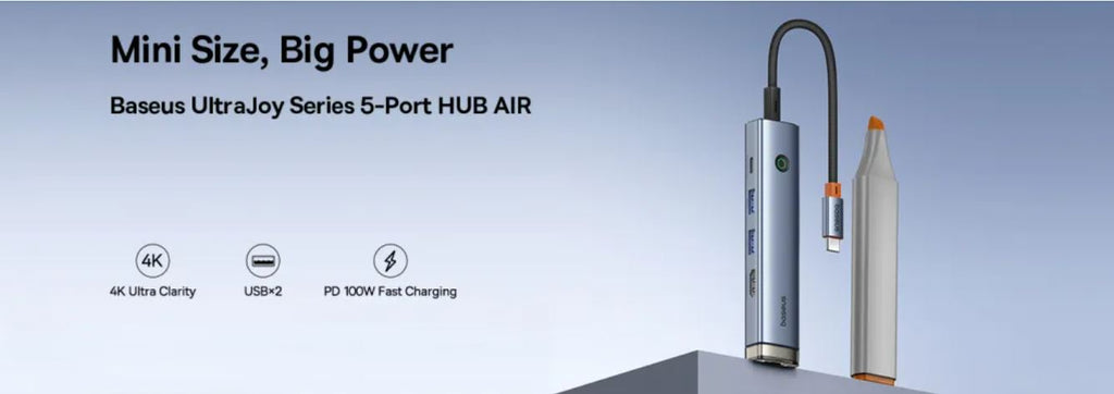 - BASEUS BS-OH165 UltraJoy Series 5-Port HUB AIR 5-In-1 Multi-Port Adapter to HD 4K, 2xUSB 3.0, PD, RJ45
