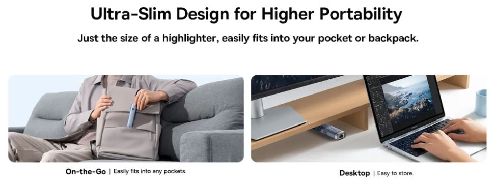 The RJ45 port on the Baseus Ultra Joy BS-OH165 uses the Realtek RTL8153B chip, offering a transfer speed of 1000Mbps. This allows users to enjoy a stable and fast internet connection, essential for remote work, downloading large files, or streaming videos.