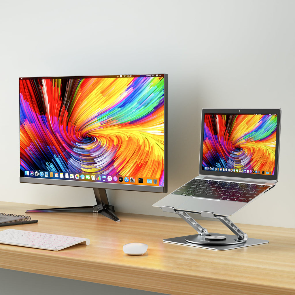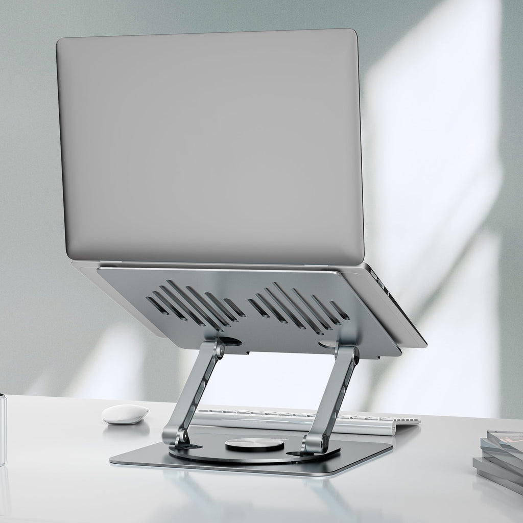 Enhance your workspace with the mbeat Stage S7 Rotating Laptop Stand. Ideal for professionals and students, it offers a robust, adjustable platform that supports ergonomic posture. With a sleek aluminium build and thoughtful design, it ensures your laptop stays cool and secure during prolonged use.